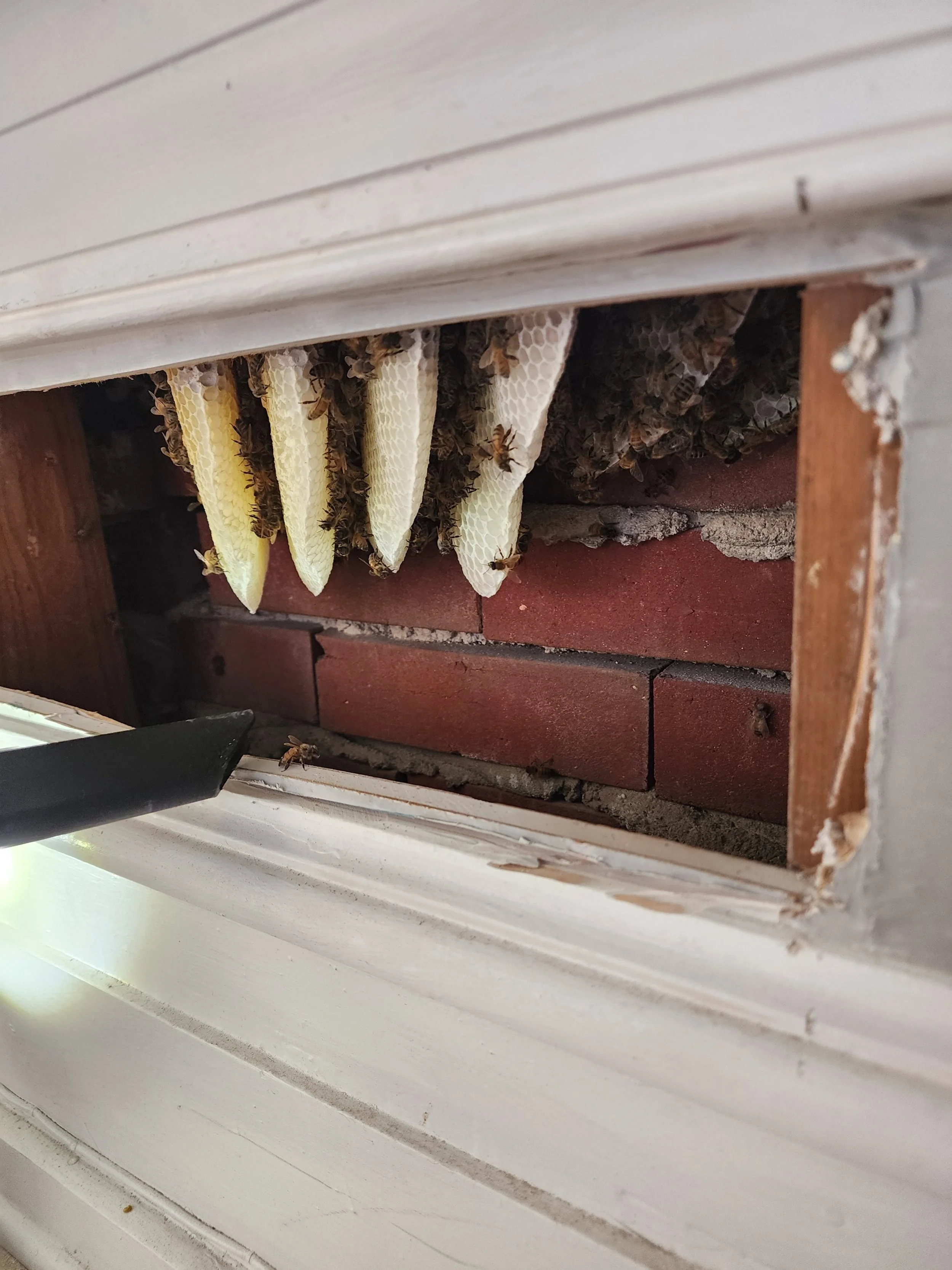 Honey bee colonies reproduce as a whole. This process is called swarming. When a colony becomes too large, half the colony leaves the hive. Often times, this swarm will be seen in trees or other areas in nature. If a swarm of bees is observed in, near, or around your property, please call us to catch and relocate it. We will be happy to “cut-out” and remove a colony from a structure or home but will not do repair work. 3-hour minimum price of $400, and $100/each additional hour. We do non-honeybee exterminations for $225